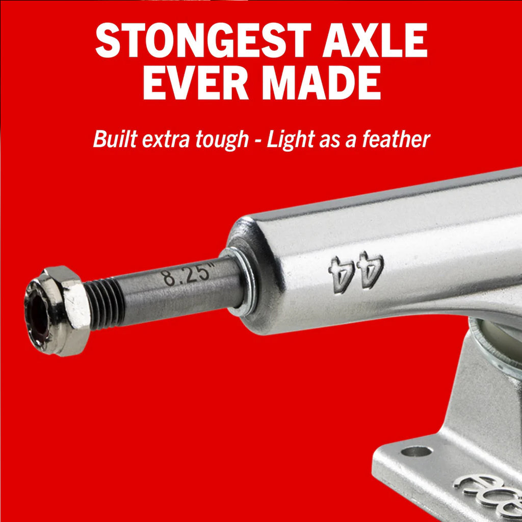 At the heart of our design is a patent pending technology providing a more stable anchor point for the kingpin. Our innovative hollowed axle system and domed-out baseplate make it the strongest and lightest truck we've ever created.Â